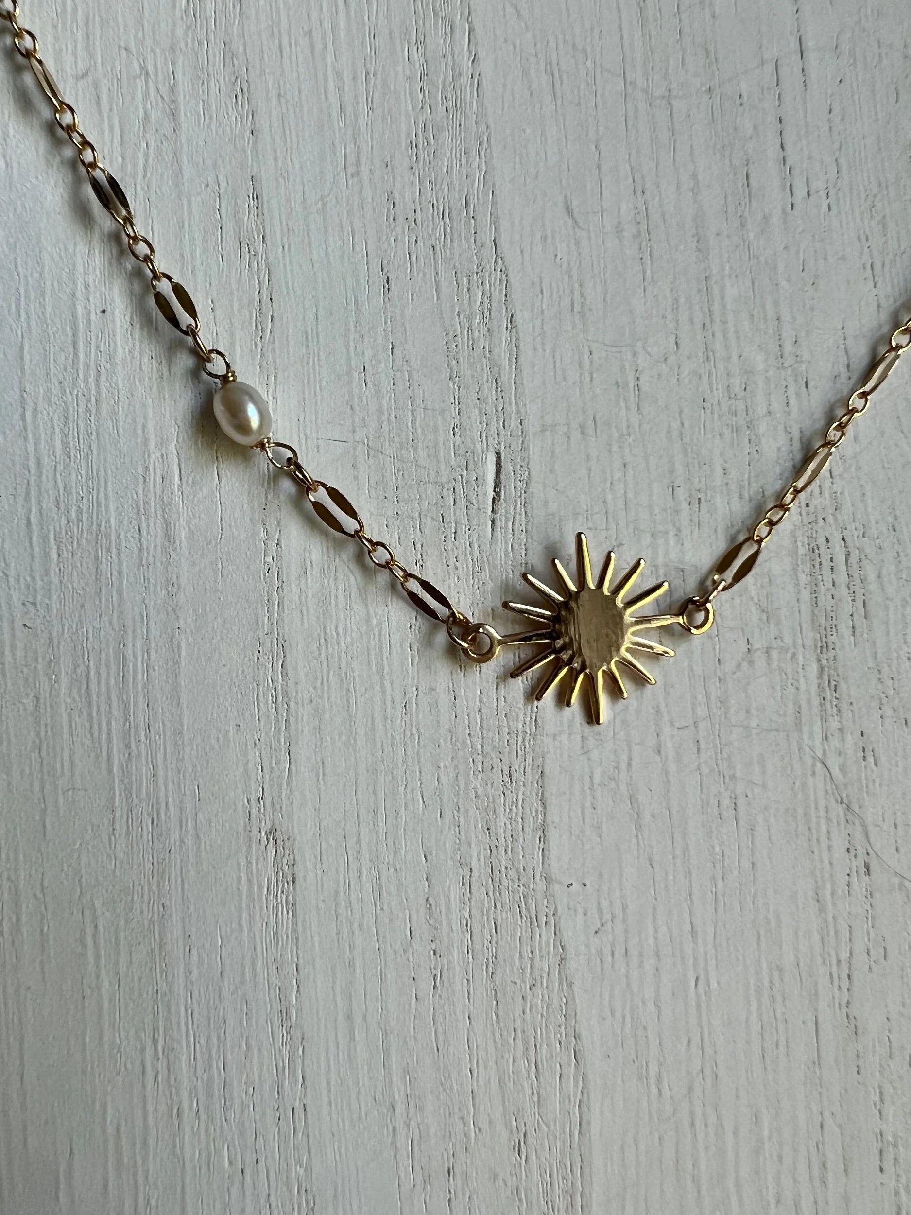 14k gold: chain, lobster claw clasp, sun connector & Pearl connector